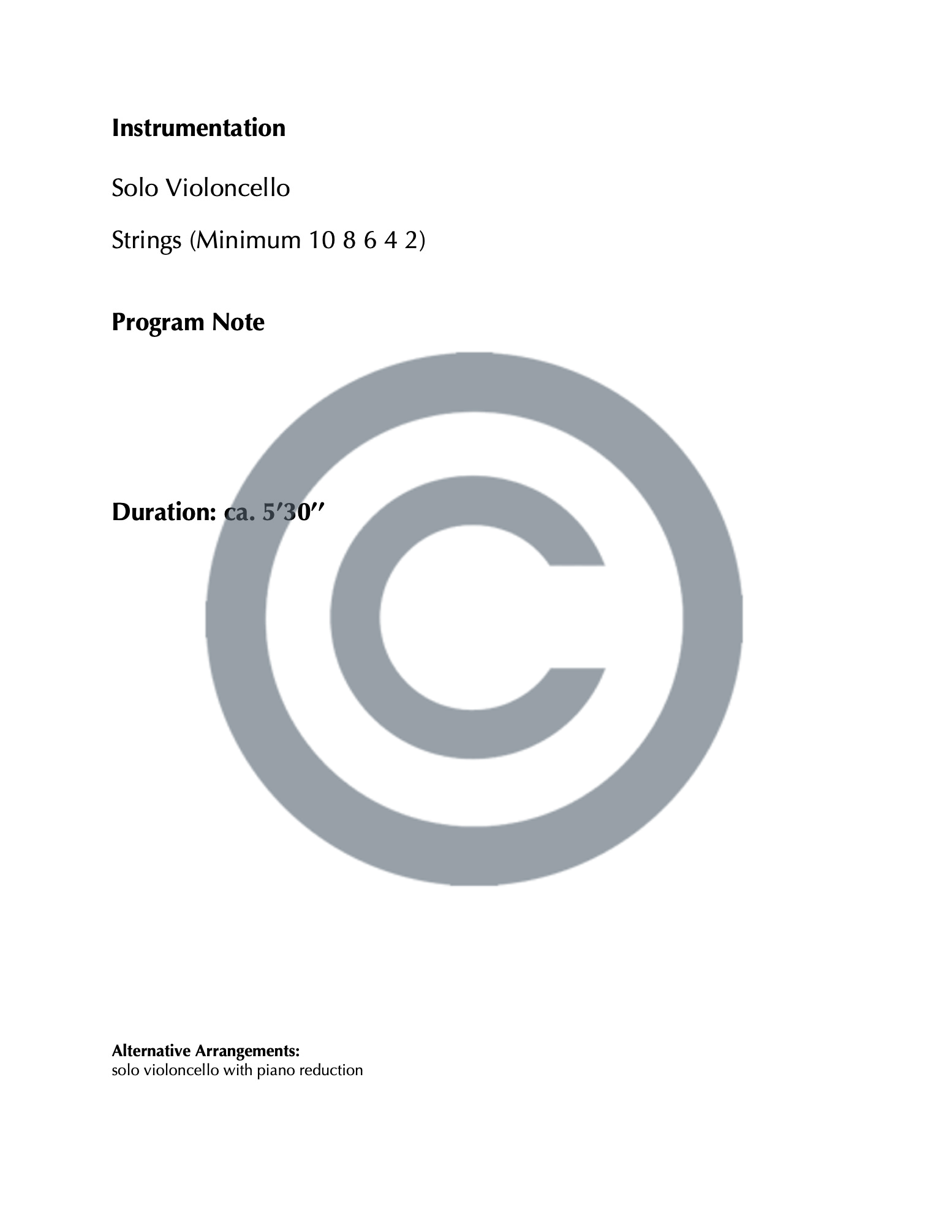 INSTRUMENTATION: violoncello & string orchestra (10 8 6 4 2). Reduced strings count available by request.