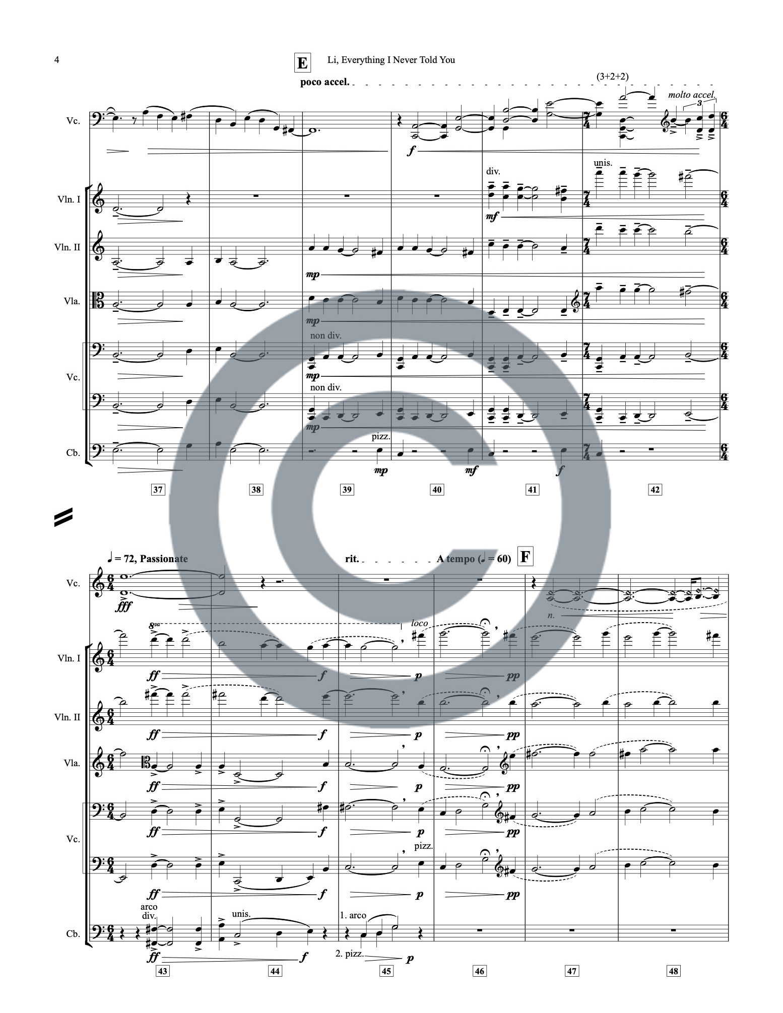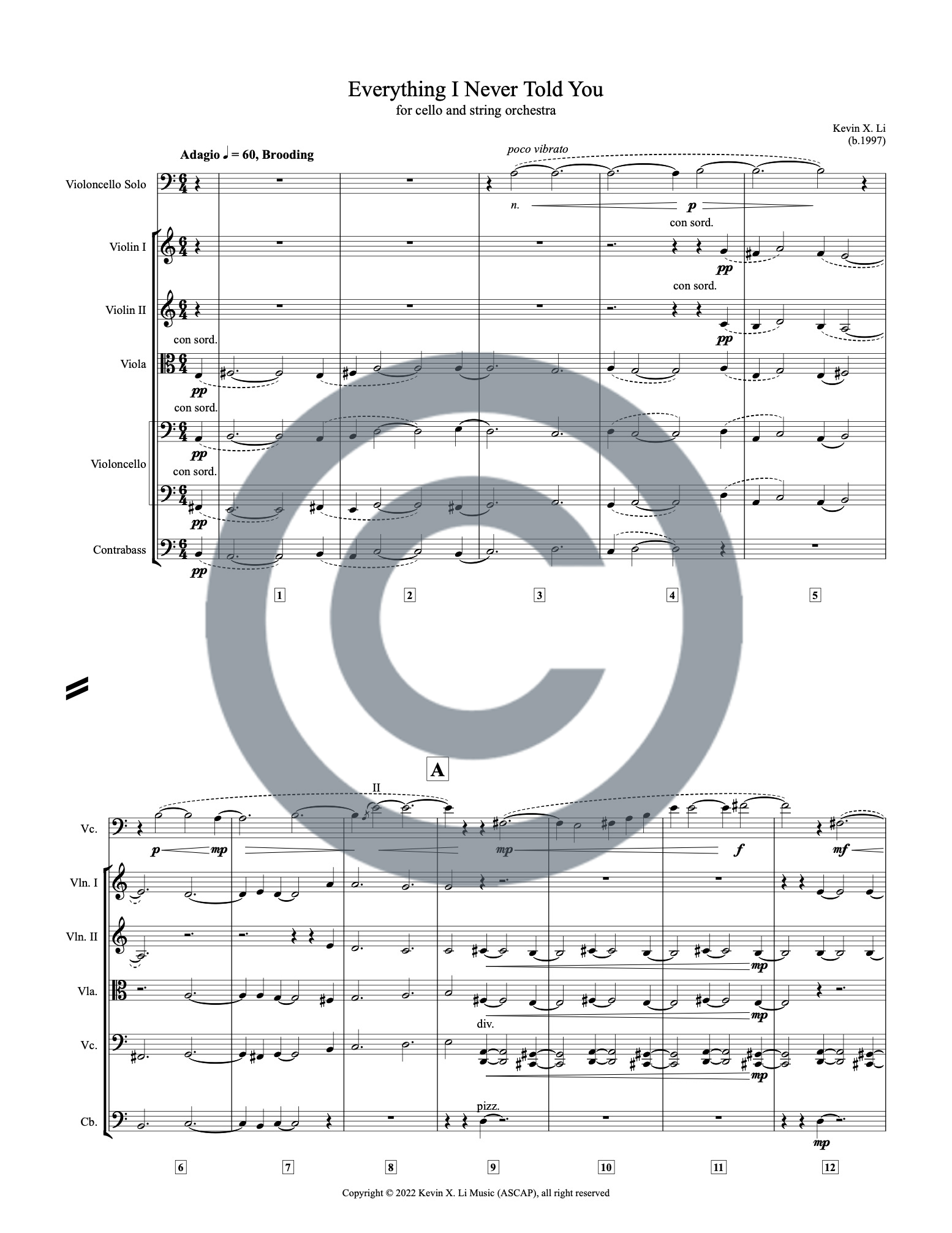 When I saw the book, Everything I Never Told You on my sister's bookshelf, the title immediately evoked my imagination. Emotionally, this work is a sequel to my piano trio Solace (2022), as my dear friend suggested, an unofficial second movement, sort to speak. In contrast to Solace's highly motivic and developmental nature, Everything I Never Told You is the exact opposite. It is about thoughts, whispers, and silence.